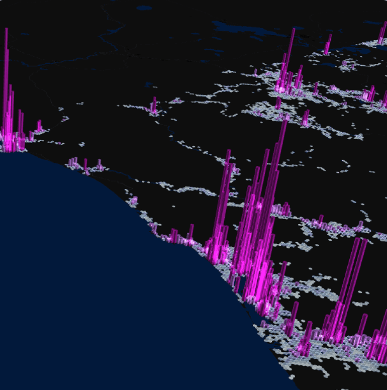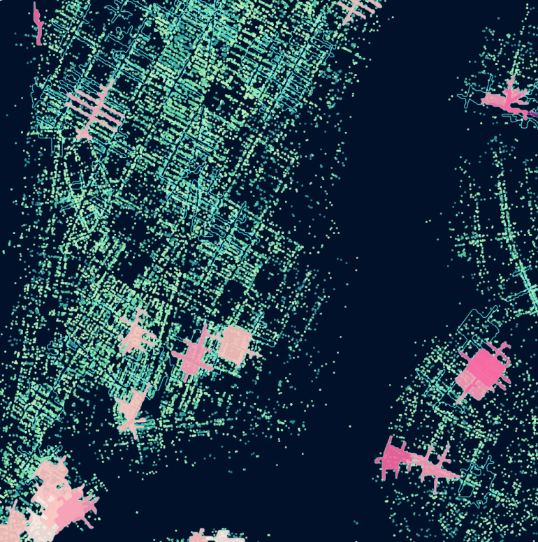 - Visualization using deck.gl, web-GL and GPU technology
