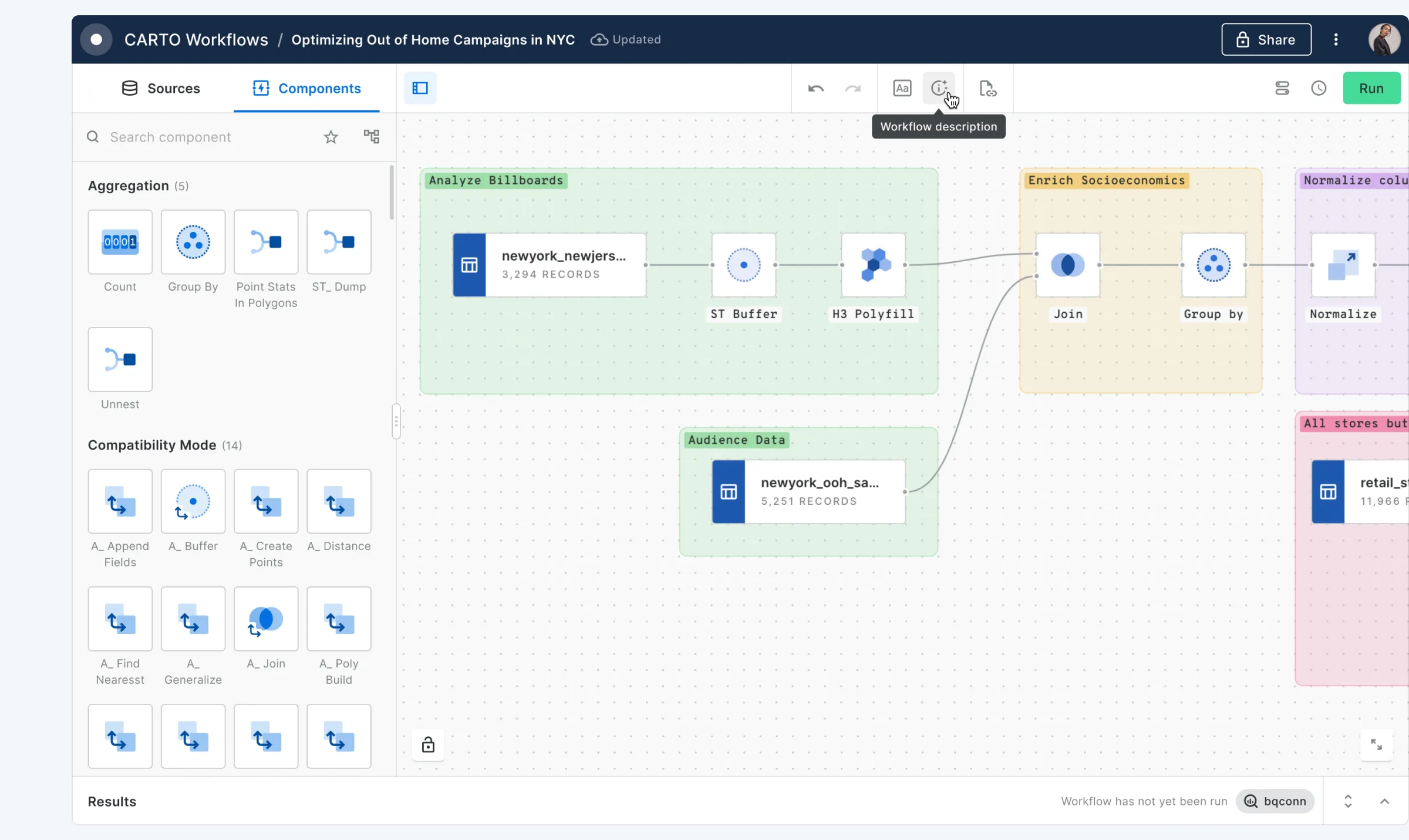 Simplify your analytics with Workflows, our drag-and-drop analysis design & automation tool. Configure, run & share analysis pipelines using a no-code visual interface. 100+ preconfigured components for any analytical use case, without the need for SQL knowledge.
