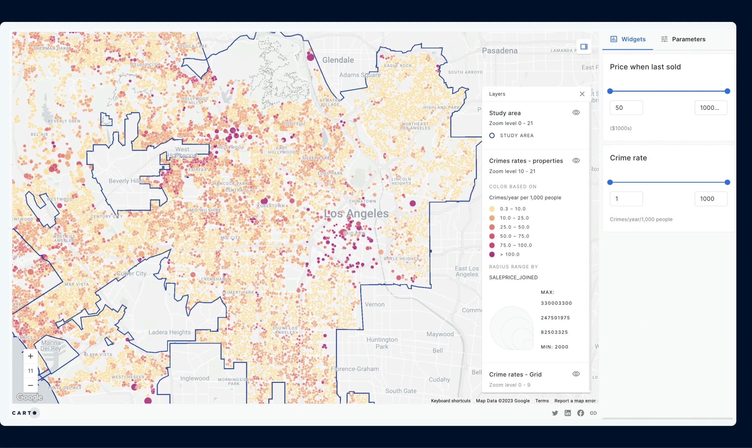With Builder you can visualize, analyze & share geospatial insights securely. A fully cloud native point-and-click analysis & map making tool.