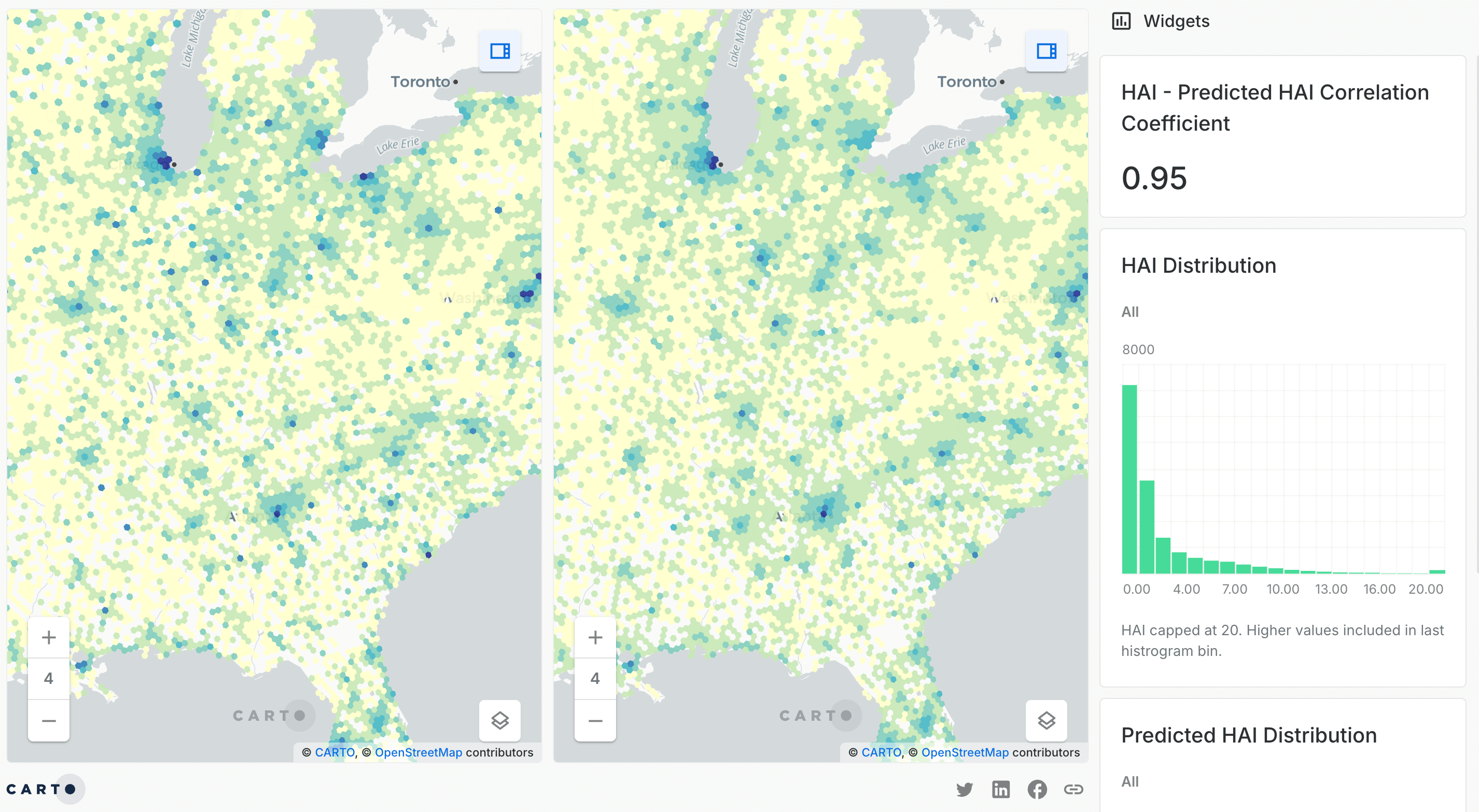 - Data preparation: Each ZIP Code Tabulation Area (ZCTA) centroid was assigned to its corresponding H3 resolution 8 cell to enable a join with the Human Activity Index from CARTO Spatial Features.