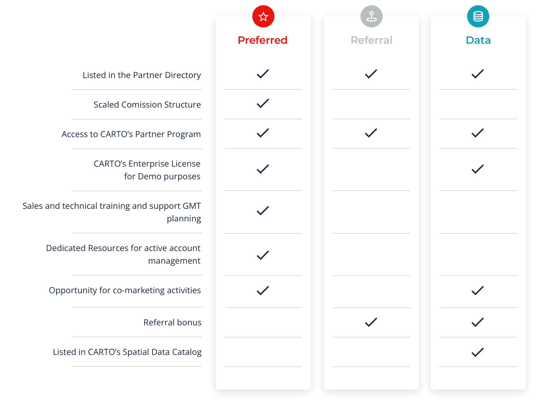 CARTO’s Preferred Partner Program is a global network of partners across a wide range of industries with an expertise in GIS that use and resell CARTO to provide modern geospatial solutions to their clients. They work with clients to go beyond existing GIS technologies to provide more intuitive & valuable Location Intelligence solutions for site selection, territory management, geomarketing, mobility analysis & much more.