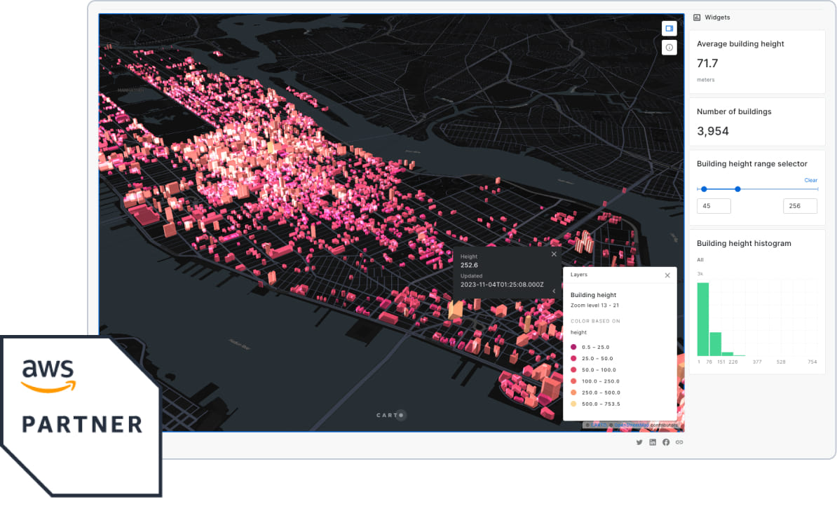 Connect CARTO to Amazon Redshift and forget about moving data out of your lakehouse to solve your geospatial needs.